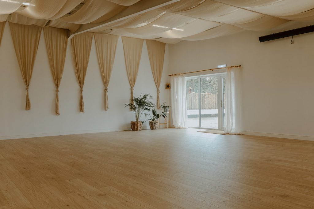 Bloom is a beautiful large room, specifically designed for Yoga, Meditation, Breathwork etc